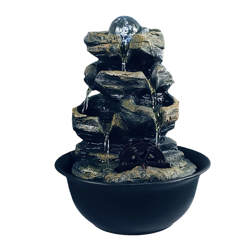 USB Powered Mini Water Wheel Fountain Resin Desktop Zen Decor